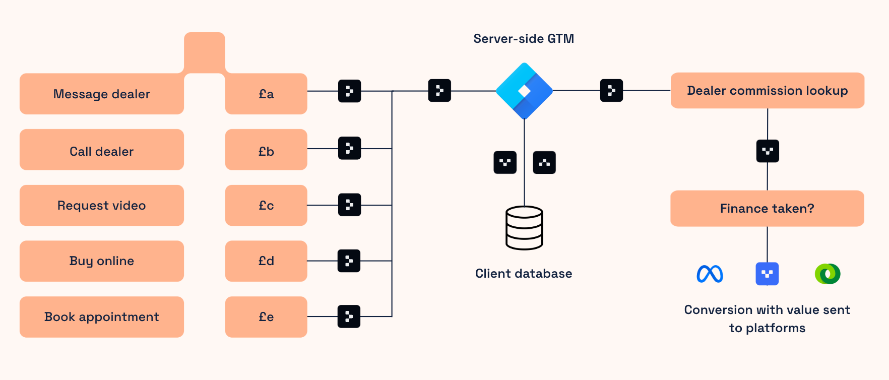 We used internal data to determine the weighted value of these actions and built out a server-side solution for value-based bidding, whereby conversion values were calculated and set accordingly.