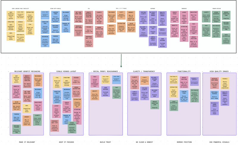 To build the framework, we held a collaborative workshop within the team, where the team pooled our expertise and analysed research from top UX and Conversion Optimisation sources. After refining our findings, we identified six key principles that drive landing page effectiveness.